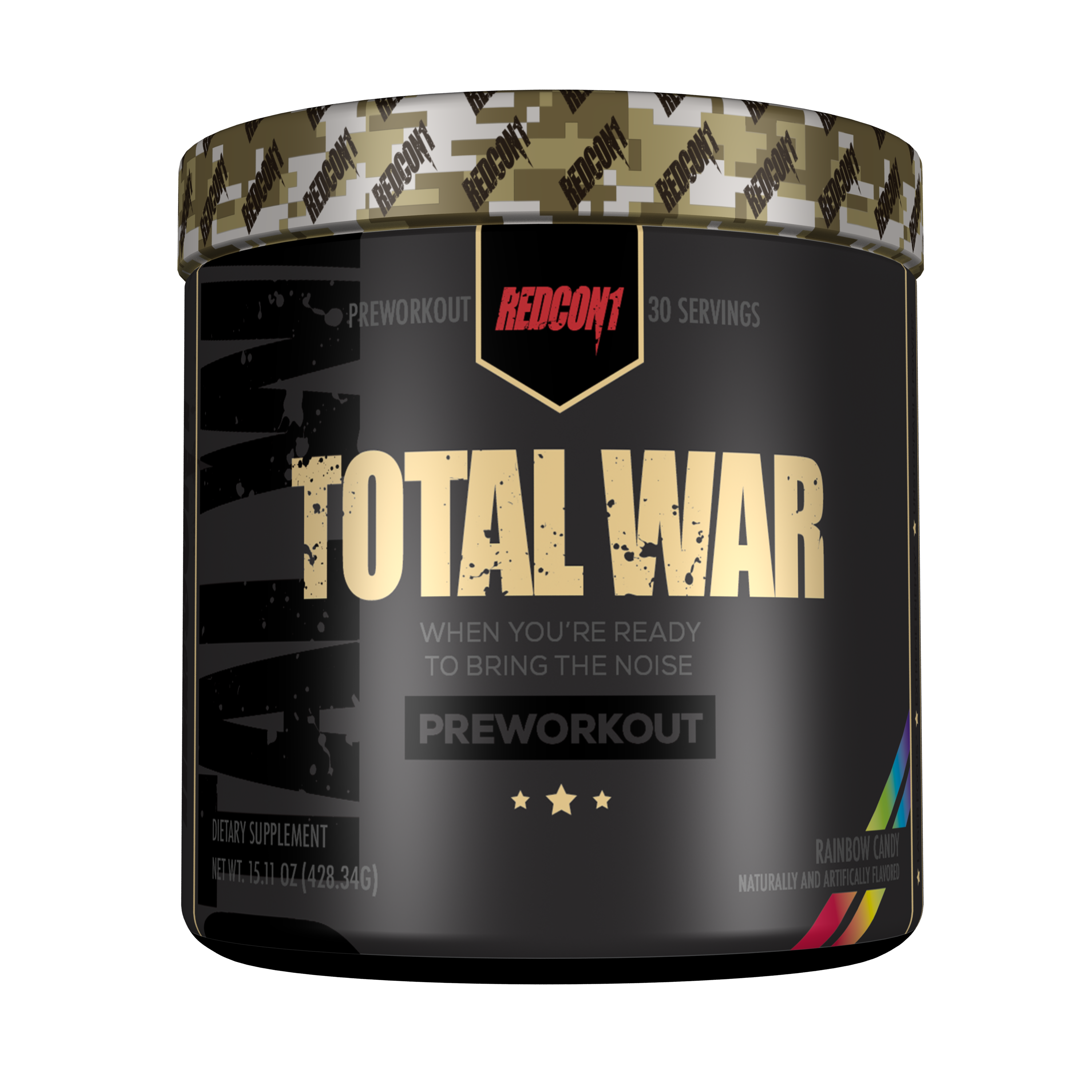 Total War Pre-Workout is a synergistic blend of amino acids, herbal extracts and sustained release caffeine for the ultimate workout and muscle-fullness experience. Each serve of Redcon1 Total War contains 350mg of caffeine, with a range of nitric oxide enhancers, including citrulline malate and agmatine sulfate, to enhance muscle pumps and vascularity.